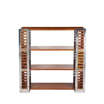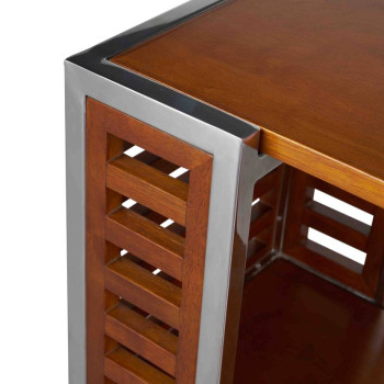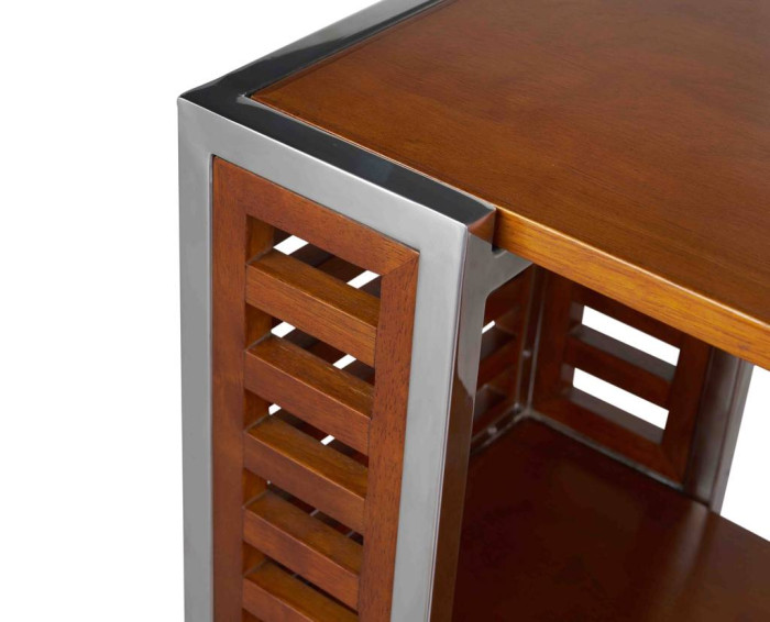 - Chaque cotés, formant un U, sont décoré de planche de bois d'hévéa ajourée, dont le contour est en inox poli, pour un effet de légèreté