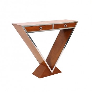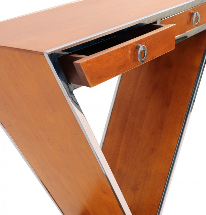 0000 - Console Delta 2 Tiroirs Bois Couleur Noyer Et METAL INOX IXTAC10