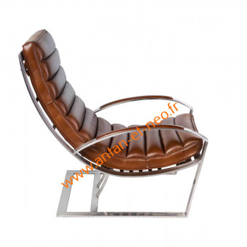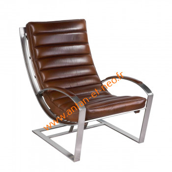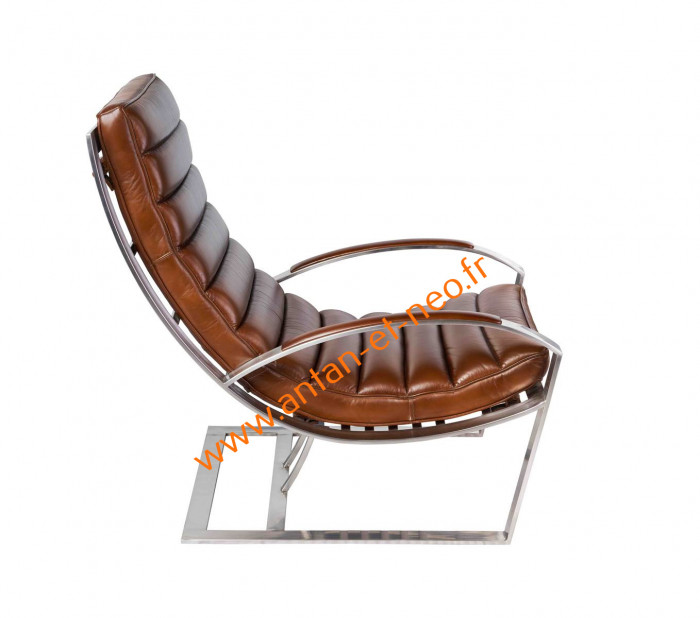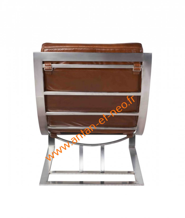FAUTEUIL CHAISE CUIR et INOX VINTAGE MADRID IXCL57V01 Dimensions : L 68 CM X H 92 CM P 94 CM