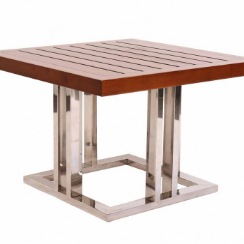 0000 - TABLE D'APPOINT PIROGUE CARRÉ BOIS ET INOX TBB44-IX-P