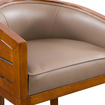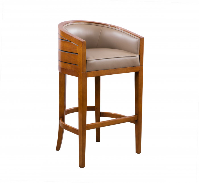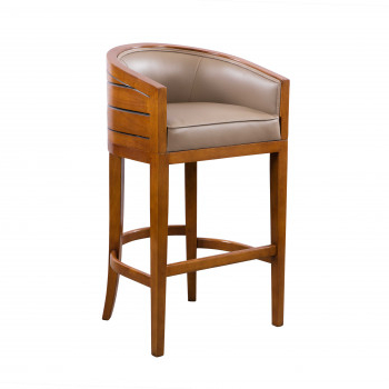 TABOURET DE BAR Pirogue BOIS et cuir GRIS TAUPE - design CHABAR43C-C12 |