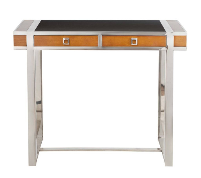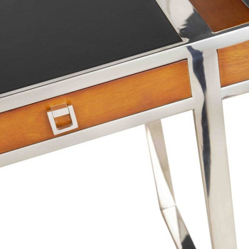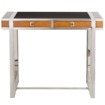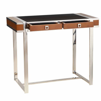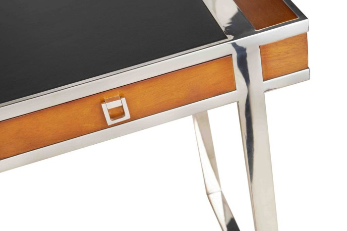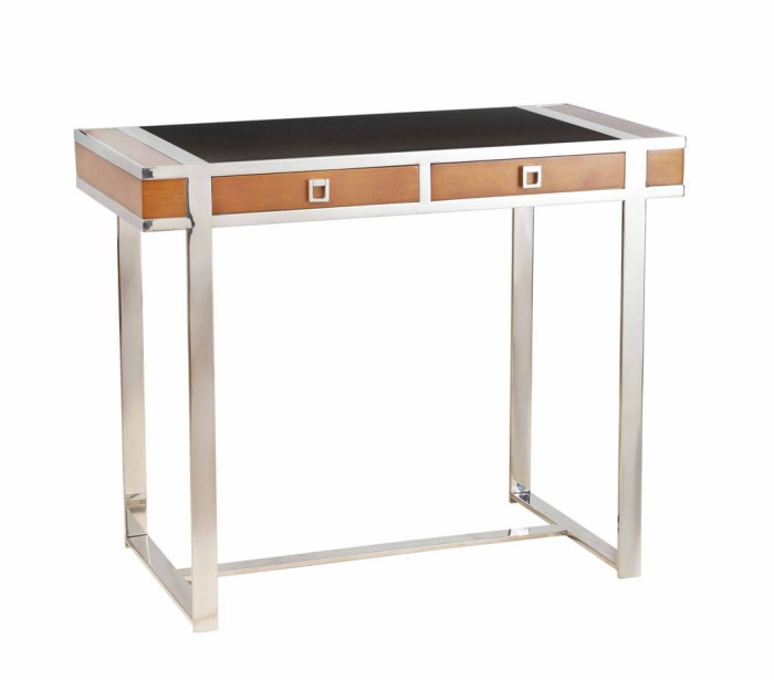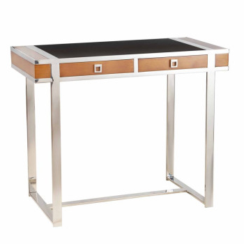 PETIT BUREAU ASTON, VERNIS NOYER CUIR et METAL INOX IXBUR07-C4