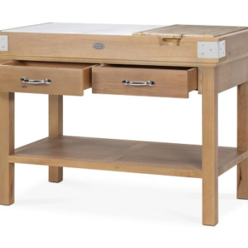 Un billot en bois de bout amovible (40,8×60,6x6cm) et un plan de travail en marbre.