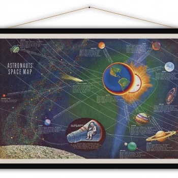 Carte scolaire la découverte de l'espace - Astronaute - Space Decovery  - Mission Apollo - Vintage Maps