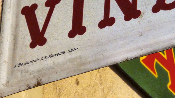 Antiquité Tole DOUBLE Face VINS KARAFON ANDREIS MARSEILLE
