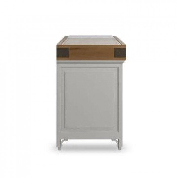 Billot Hoëdic GM : un billot qui allie des lignes savamment travaillées avec une délicate quincaillerie en laiton qui rappellent nos belles maisons de campagne . En bref, voici notre madeleine de Proust : le meuble de famille dans toute sa splendeur, le charme par excellence ! Le billot HOËDIC avec son élégante ceinture en finition “vieux bois” se décline dans les 11 teintes originales qui composent la palette DE KERCOET. La collection HOËDIC se décline en billot îlot grand modèle et en billot îlot moyen modèle avec ou sans crédence.