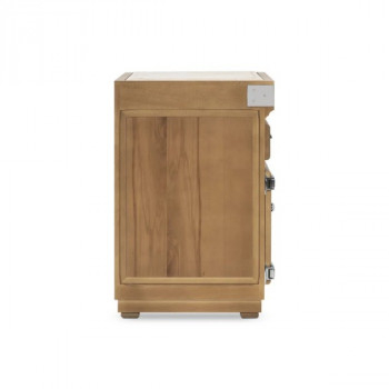 Le plan de travail est composé d’un bois de bout. Le meuble s’habille d’une porte et d’un tiroir monté  sur glissières avec amortisseur intégré « soft close » vous apporte un plus grand confort au quotidien.