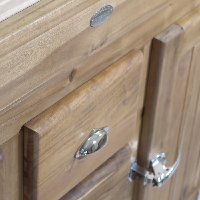 Les meubles DE KERCOET sont conçus et réalisés avec le plus grand soin. La qualité des bois sélectionnés et la finition à la main leur confèrent un caractère unique. Nos meubles sont livrés assemblés et prêts à l’usage. Nous vous recommandons d’huiler votre bois de bout avant sa première utilisation – voir conseils d’entretien.