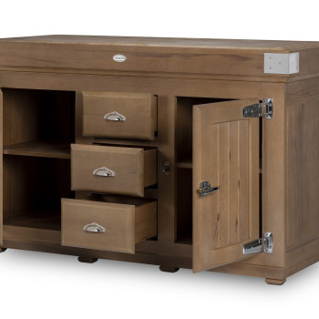 Le plan de travail est composé d’un bois de bout. Le meuble s’habille d’une porte et d’un tiroir monté sur glissières avec amortisseur intégré « soft close » vous apporte un plus grand confort au quotidien.