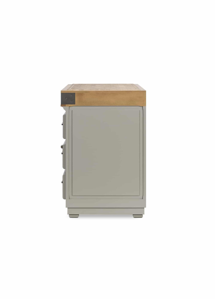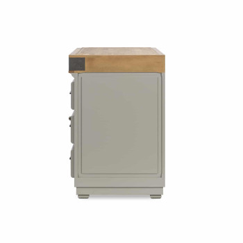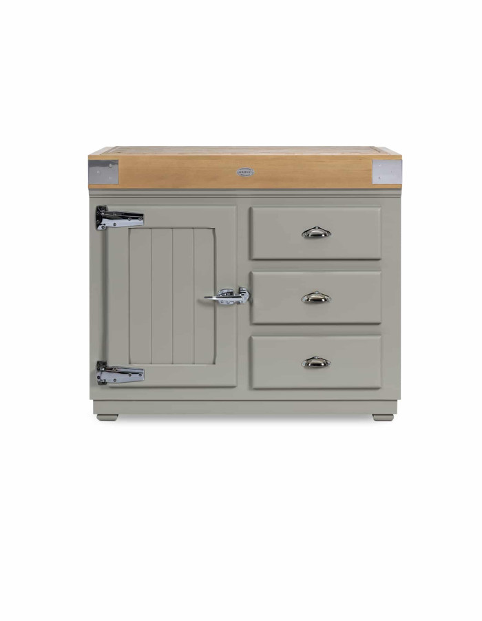 Le plan de travail est composé d’un bois de bout. Le meuble s’habille d’une porte et d’un tiroir monté sur glissières avec amortisseur intégré « soft close » vous apporte un plus grand confort au quotidien.