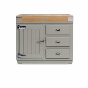 Les poignées, de qualité professionnelle, sont en finition chromée. Les côtés sont “plats” mais panneautés ; cela vous permet d’encastrer le meuble ou pas.