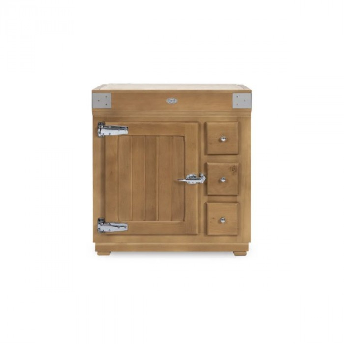 Le plan de travail est composé d’un bois de bout. Le meuble s’habille d’une porte et ses 3 tiroirs montés sur glissières avec amortisseur intégré « soft close » vous apportent un plus grand confort au quotidien.