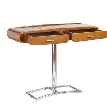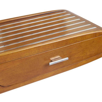 Plateau en bois, dessus strié de ligne d'inox chromé