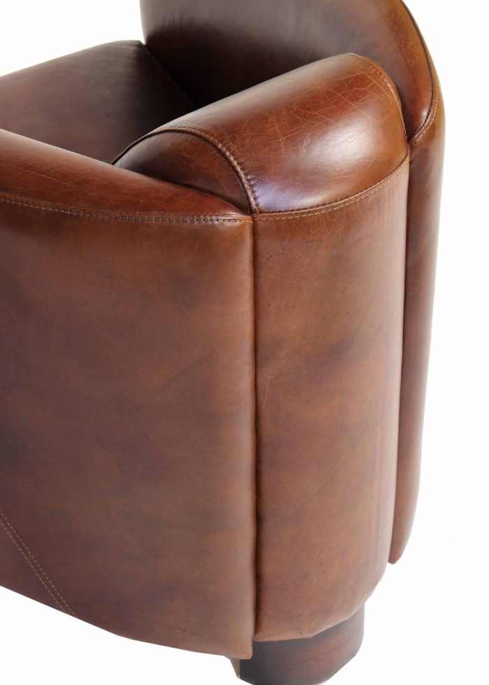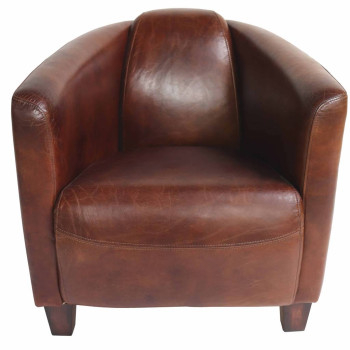 FAUTEUIL Club Barquette Cuir Marron SILVERSTONE