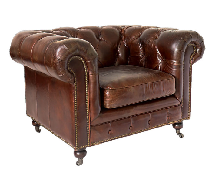 FAUTEUIL Club Chesterfield CUIR VINTAGE Couleur Cigare CL04