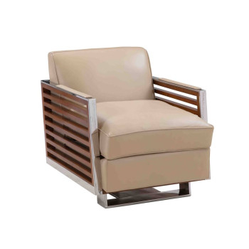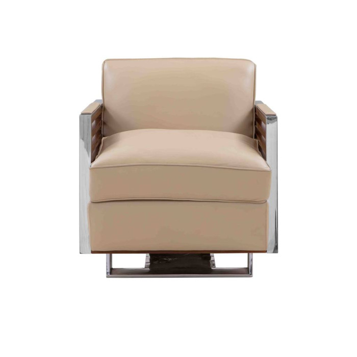 FAUTEUIL TORINO, CUIR BEIGE Bois Et Inox Réf IXCL77C-C5