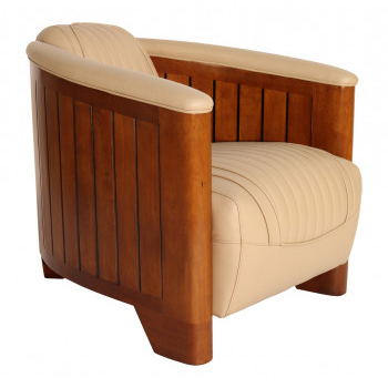 Fauteuil Club Canoé Riva - Cuir Creme IVOIRE - Paquebot de luxe