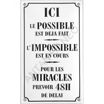Plaque Email ICI LE POSSIBLE EST DEJA FAIT.... MIRACLE - Enamel TIN Sign Advertising EMAIL