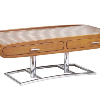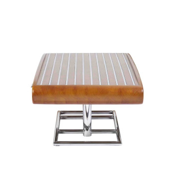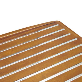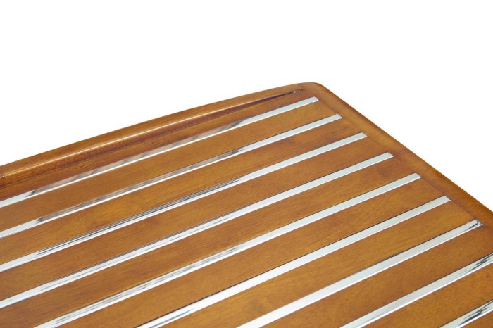 Plateau en bois, dessus strié de ligne d'inox chromé